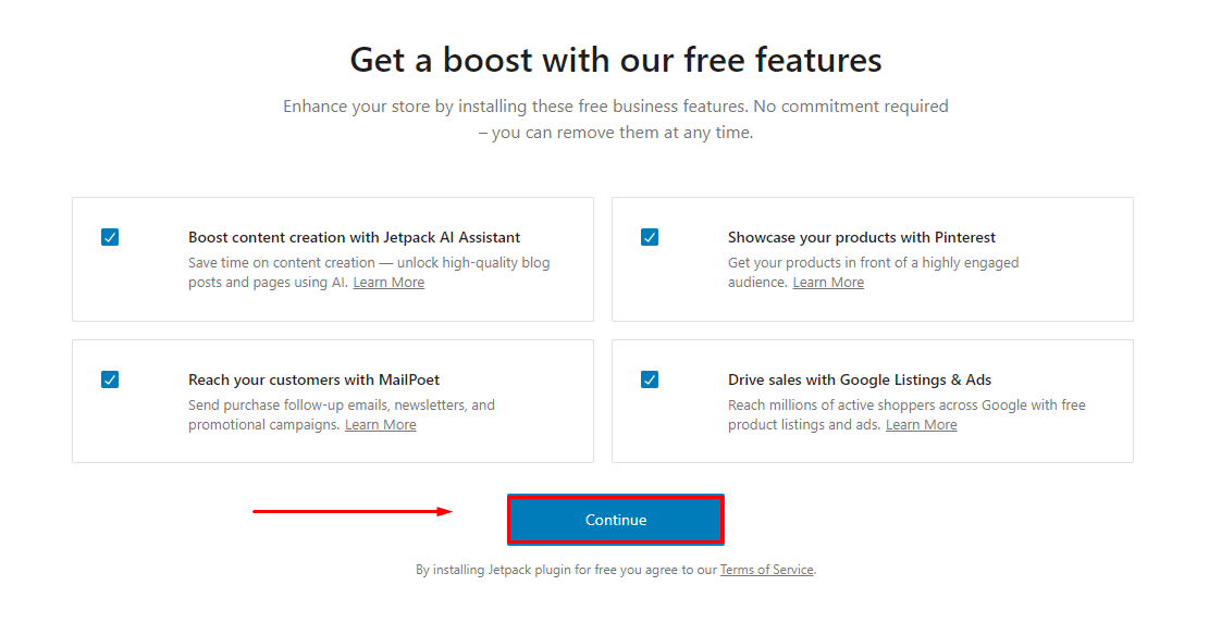 7. Jetpack (Optional): This is an optional marketing and security plugin. Choose to connect or skip for now.