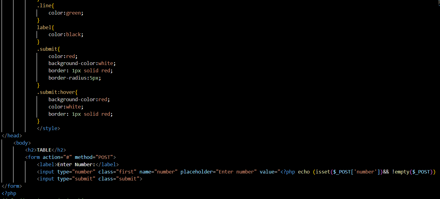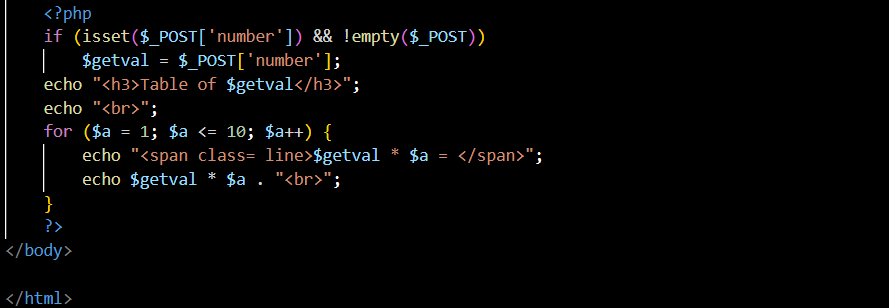 - Inside the loop, $result calculates the product of $num and the current loop counter $i.