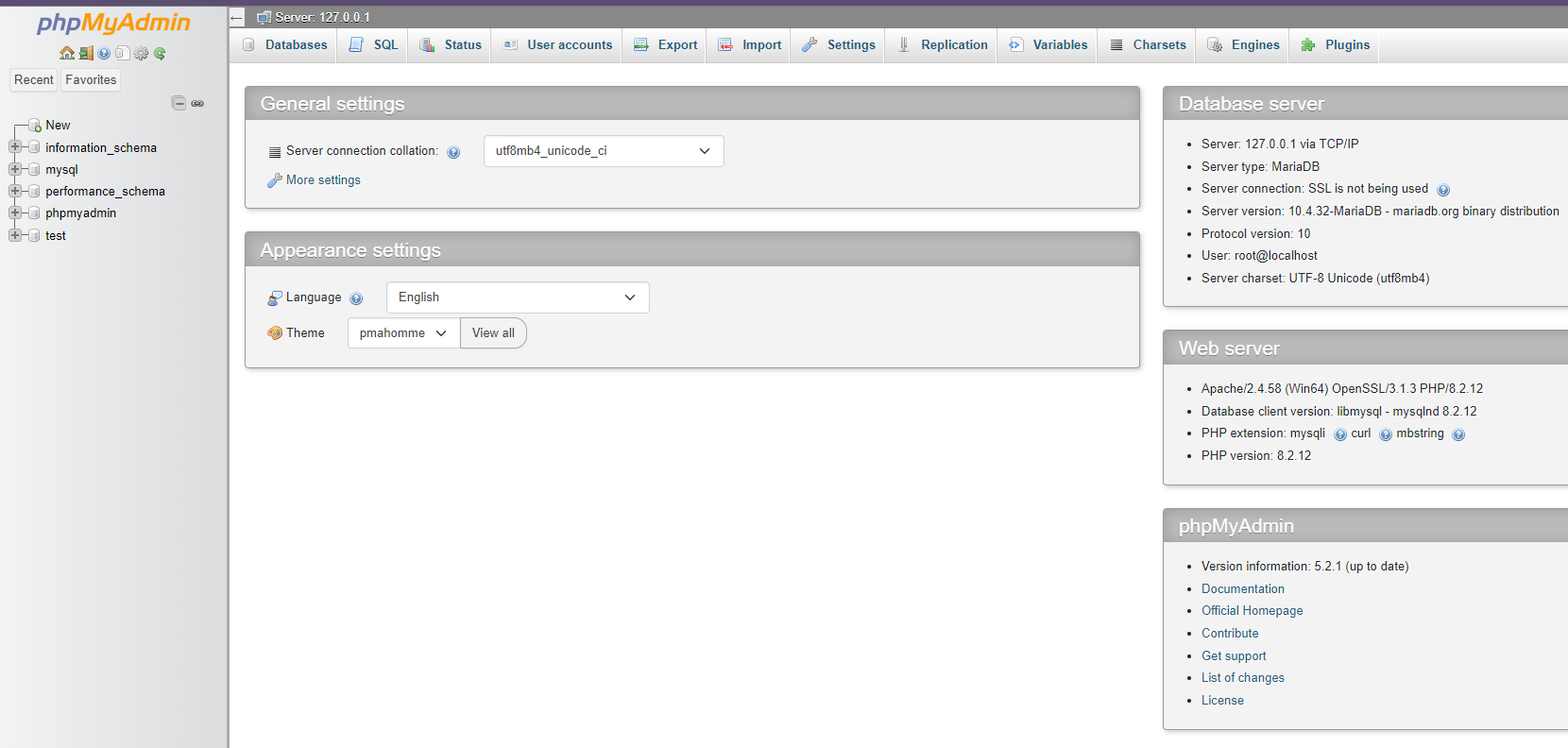 • The XAMPP Control Panel offers functionalities like configuration and managing the MySQL database (phpMyAdmin). Explore these features as needed to customise your local development environment.