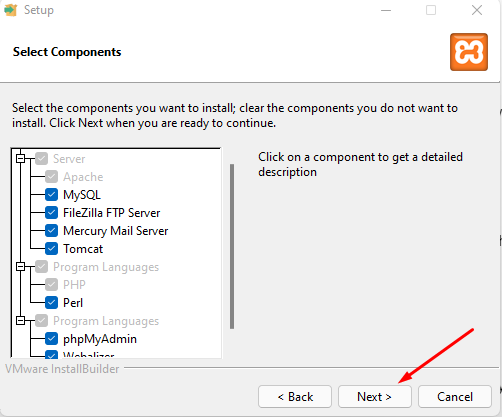 • Uncheck specific components: If you only need certain features (e.g., Apache and PHP), deselect the ones you don’t require.