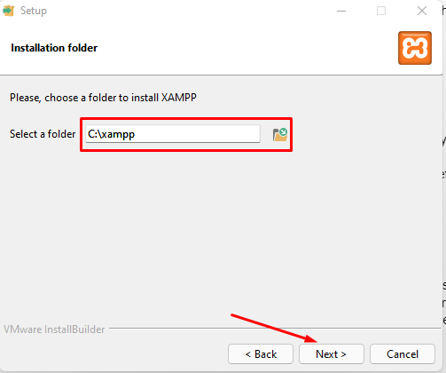Leaving the settings unchanged will install XAMPP in the “C:\xampp” directory.