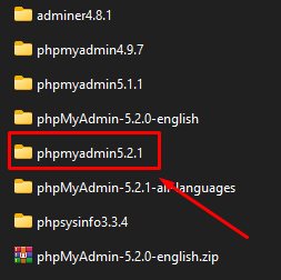- Copy all the unzipped phpMyAdmin files and folders into the apps