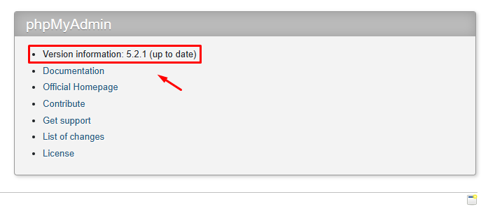 - If the new phpMyAdmin version is installed correctly, you should see the new interface.